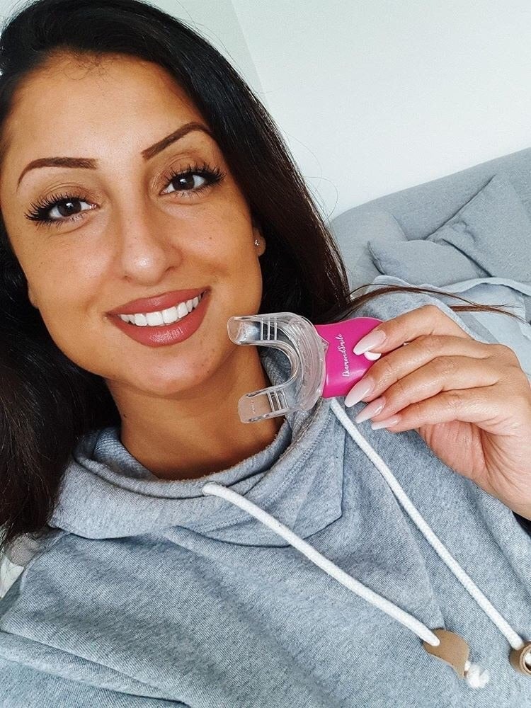 "Jeg bruger tandblegningssættet en gang om ugen. Det er super nemt at anvende den, og man har hænderne fri til andre ting. Allerede efter et par anvendelser kan man se en tydelig forskel. Jeg er vild med resultatet. 😍"
